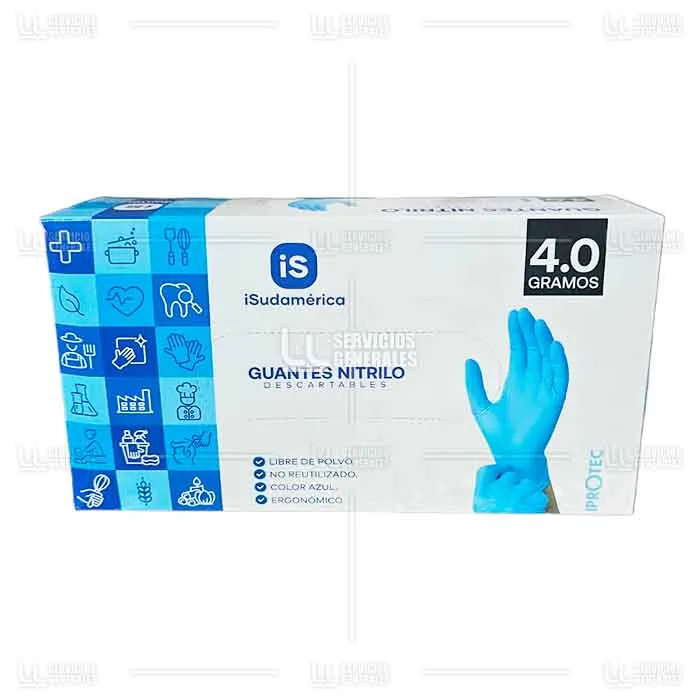 Consulte Guante Nitrilo Celeste ISudamérica IProtec 1 Pqt x 100 Uds
