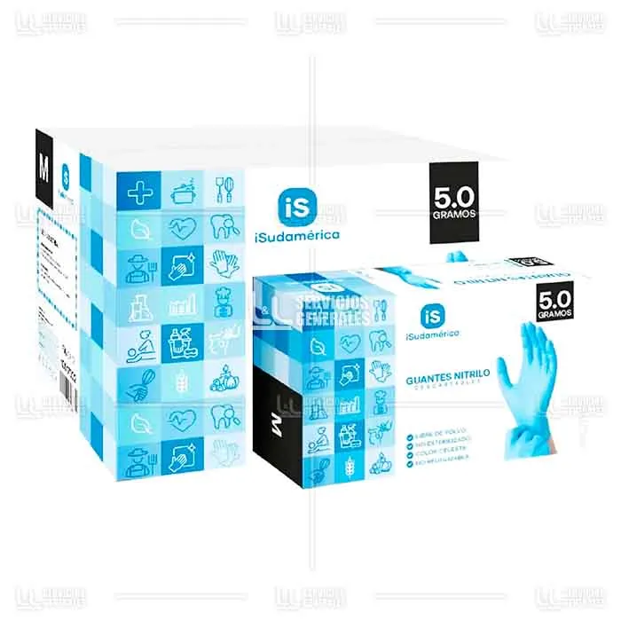 Guante Nitrilo Celeste ISudamérica IProtec 1 Pqt x 100 Uds