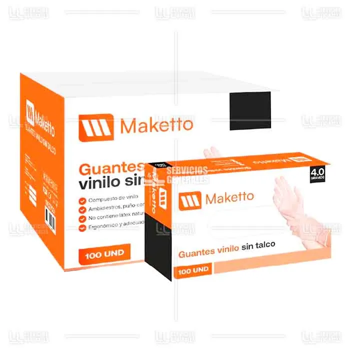 Guante Vinilo sin Talco Maketto Iprotec 1 Pqt x 100 Uds
