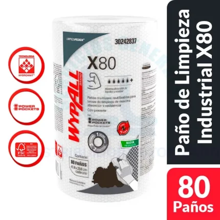 Paño de Limpieza Industrial Wypall X80 Plus 1 Pqt x 25 Paños